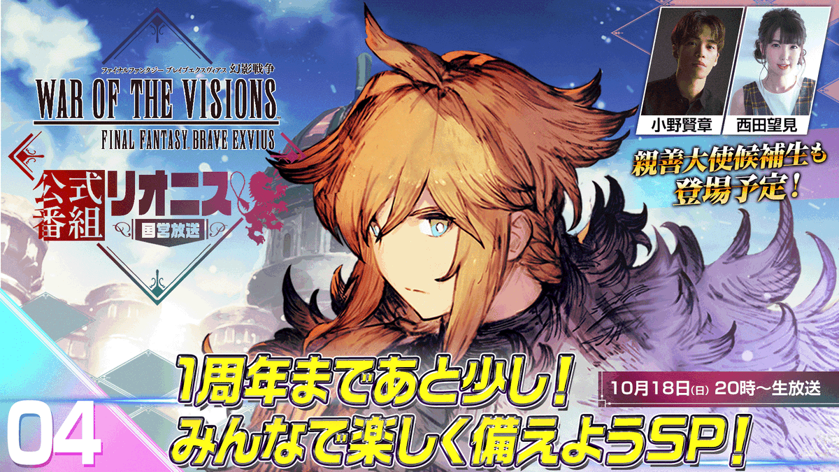 『#FFBE幻影戦争 #リオニス国営放送』第4回生放送のお知らせですきらめくハート